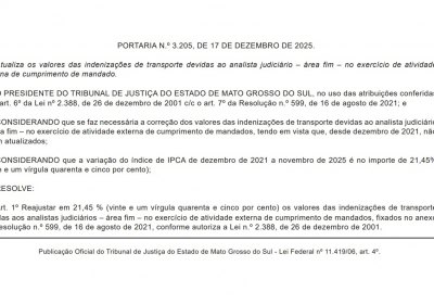 Na reunião ocorrida no dia 09/12/2025 entre o SINDIJUS e a administração do TJMS o sindicato reiterou a importância do atendimento desta demanda, ressaltando que desde a petição protocolada em 2023 (CLIQUE AQUI) o valor das diligência vinha se defasando ainda mais, obtendo êxito nesta negociação junto ao Tribunal.